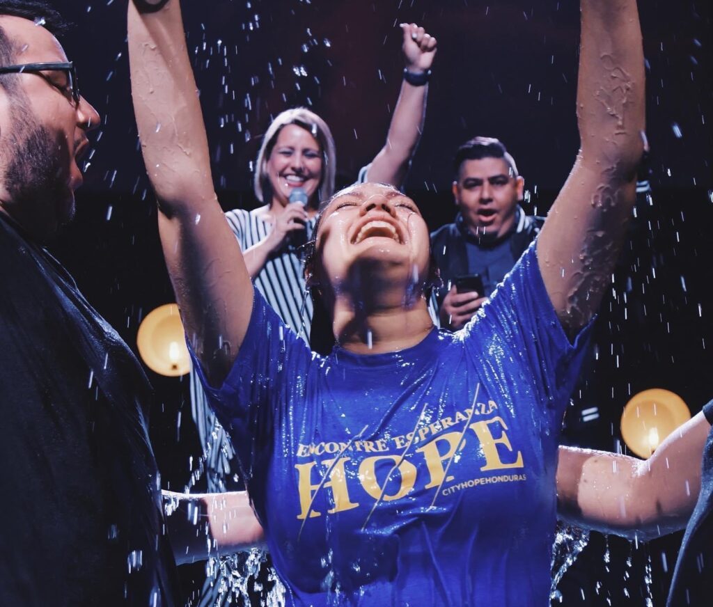 En CityHope lo celebramos durante los servicios de domingo, frente a la congregación.